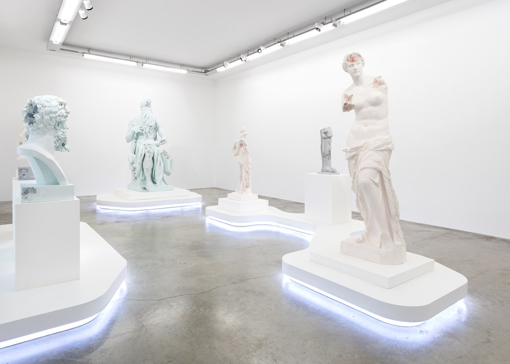 Le sculpteur a eu le privilège de collaborer étroitement avec l’atelier de moulage de la Réunion des Musées Nationaux – Grand Palais (RMN) pour lequel il a eu un accès privilégié. En effet, cet atelier historique, en fonction depuis le 19e siècle, reproduit les chefs- d’œuvre des plus grands musées d’Europe. L’artiste a ainsi eu accès aux moulages de certaines œuvres les plus symboliques des collections du musée du Louvre à Paris, du musée de l’Acropole à Athènes, et de la basilique San Pietro in Vincoli de Rome sur lesquels reposent sa nouvelle série.